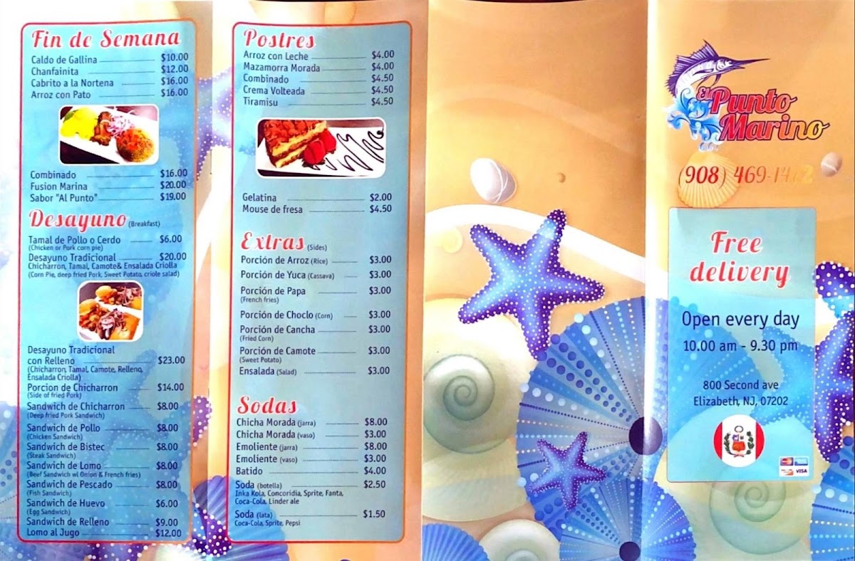 Welcome to El Punto Marino, a gem nestled in the heart of Elizabeth, New Jersey. This vibrant Peruvian restaurant is a culinary destination that promises to transport your tastebuds straight to the coastline of Peru. Located at 800 2nd Ave, El Punto Marino is not just a place to eat; it's an experience that celebrates the rich and diverse flavors of Peruvian cuisine.